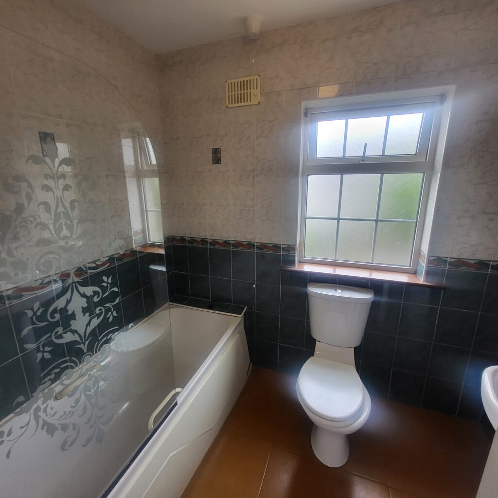 Bathroom. 2.29 m x 1.79 m. fully tiled room with bath/shower, whb & wc.