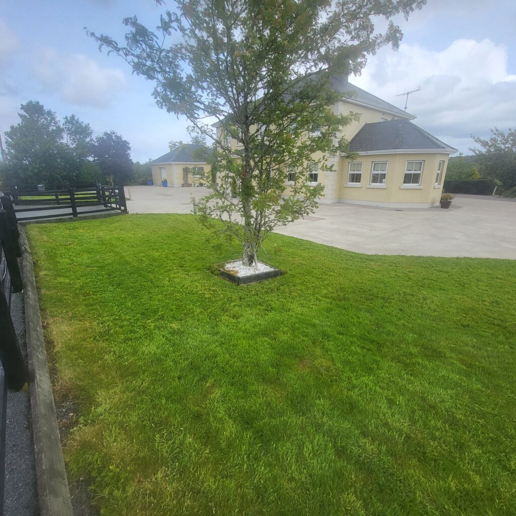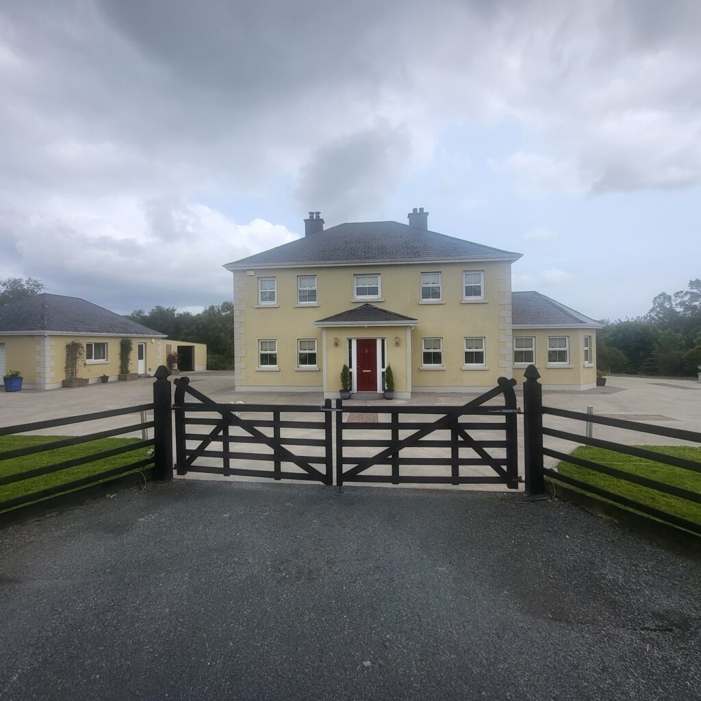 This is a very well constructed family home with a B3 energy rating, on a large 1.36 acre site with oil fired heating & solid fuel range for dual heating, mains water, treatment system, large mature gardens & paddock, driveway in concrete as is all around the dwelling, large garage and fuel store, countryside views and peaceful living.