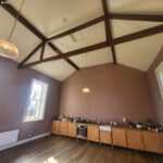 Kitchen/Dining/Living Room. 7.22 m x 6.16 m. this very large room has 4 extra large windows for light and dual aspect, fitted units, wood burning stove, original floors and high vaulted ceiling.